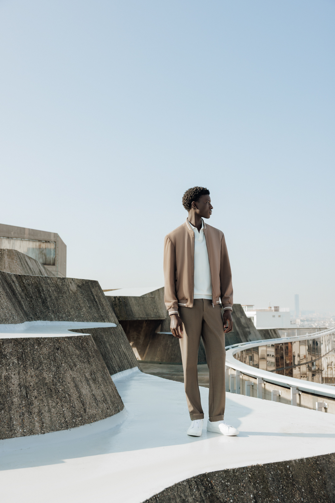 Les lieux architecturaux, choisis pour leur puissance graphique, ont permis de structurer l’image et de dialoguer avec les lignes des silhouettes.